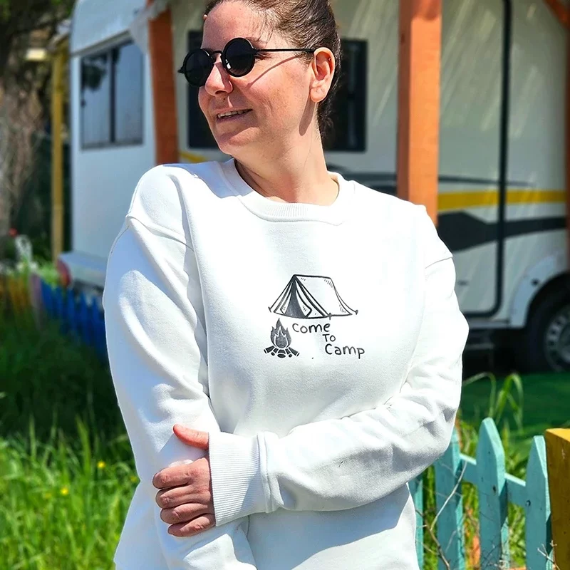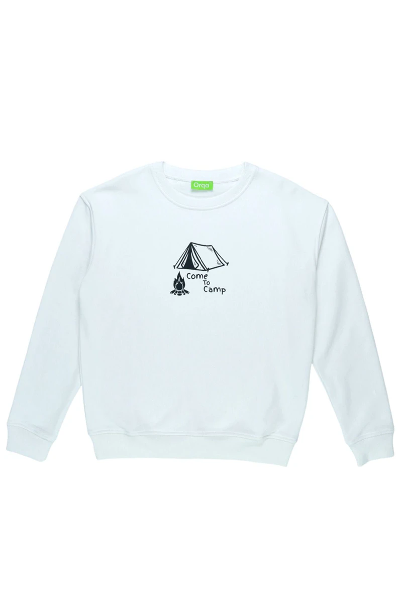 BASIC BİSİKLET YAKA KAMP TEMALI BASKILI %100 PAMUK SWEATSHIRT