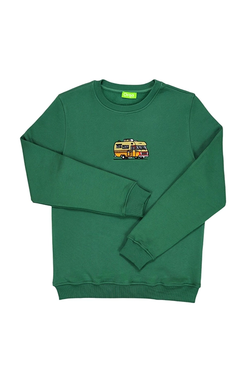 Basic Bisiklet Yaka Karavan Temalı Nakışlı Sweatshirt