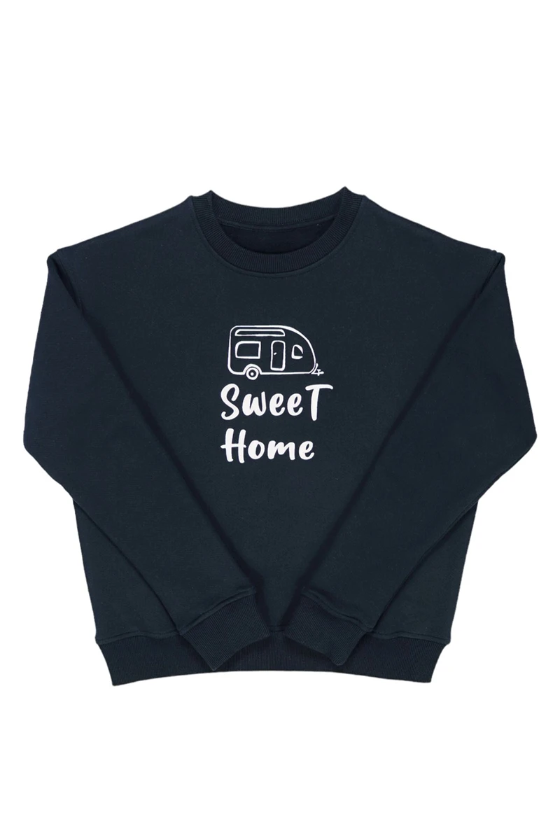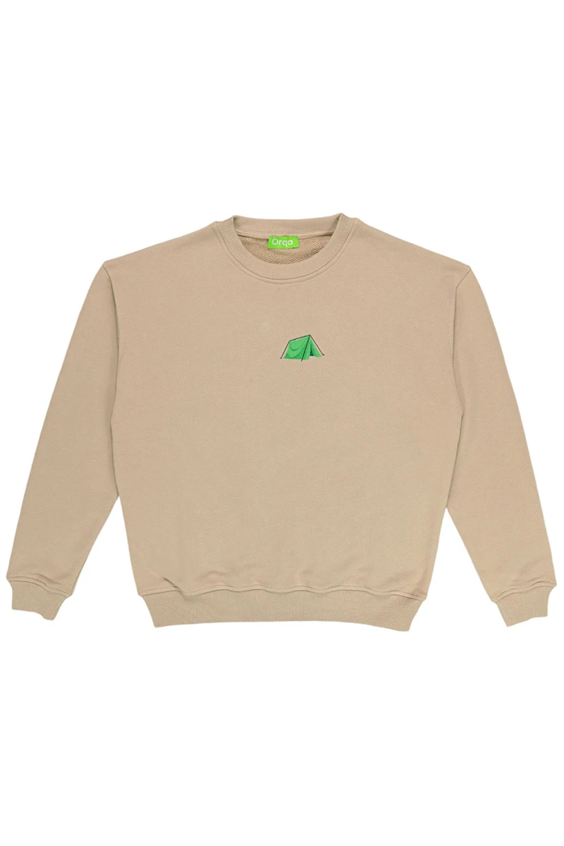 BASİC BİSİKLET YAKA KAMP TEMALI NAKIŞLI %100 PAMUK SWEATSIRT